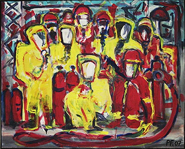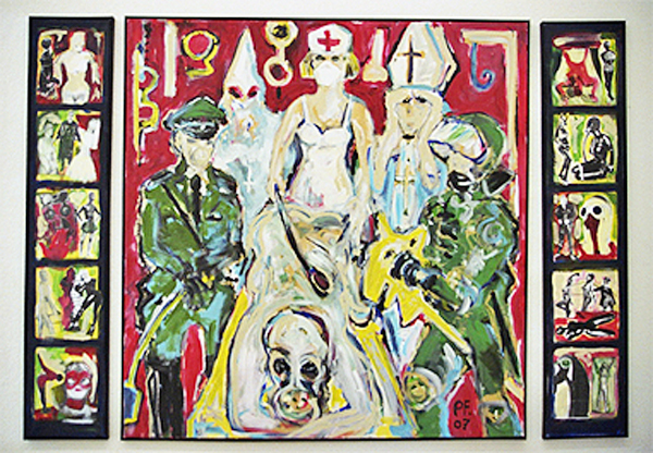 Bei seiner ersten Ausstellung in Leipzig seit vielen Jahren sind nun in der Galerie Busse eine Auswahl neuerer Arbeiten zu sehen. Im expressiven Gestus noch an seine frühen Bilder erinnernd, widerspiegeln sie heutige Realitäten – oder das, was die elektronischen Medien als solche tagtäglich verkaufen.